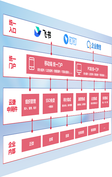 对协作平台提供支持服务,,支持企业应用与协作平台对接,,,,包含组织同步、、消息集成、、、待办集成等。。支持目前主流的协作平台:钉钉、、企微和飞书。。